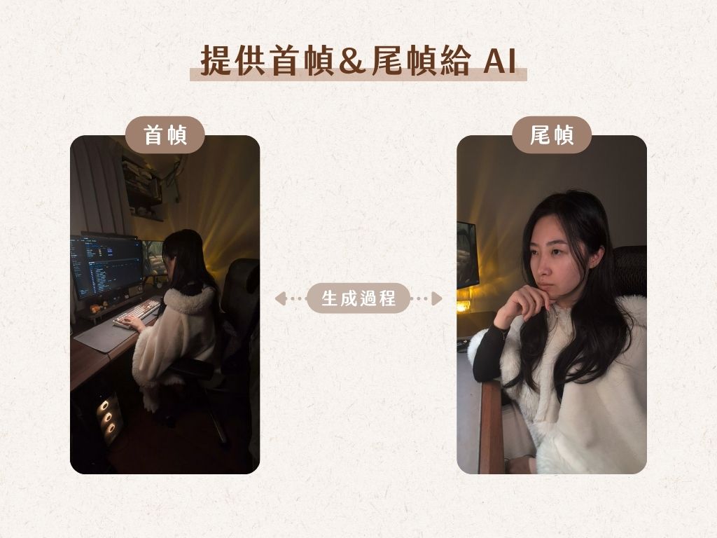 簡單說,就是拍攝首尾幀的畫面,再用 AI 幫你「補中間的過程」。