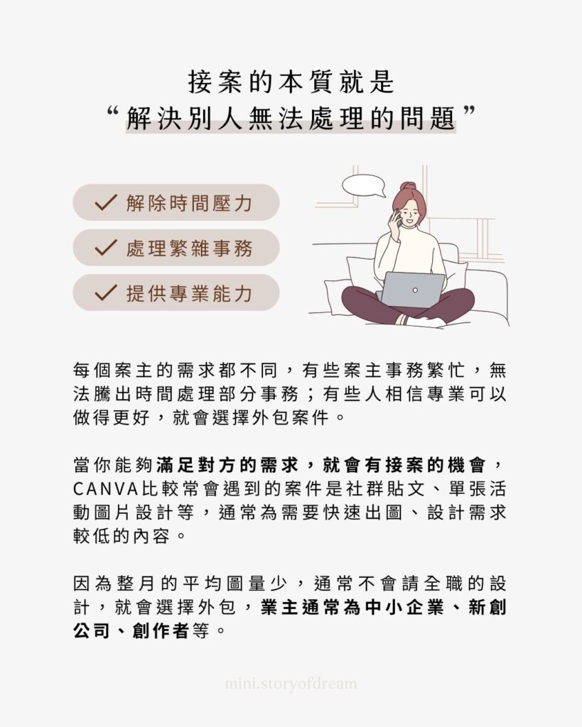 目前專注於內容設計、Canva 模板製作與社群經營教學,希望讓更多一人創業者,找到適合自己的創作節奏與商業模式。