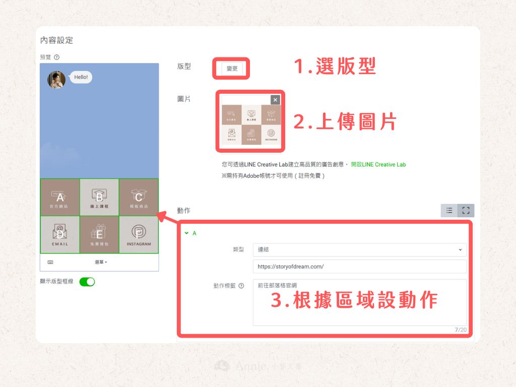 選擇你要的格數,並填上內容,這步驟很重要,因為 LINE 後台設定時需要精準對應